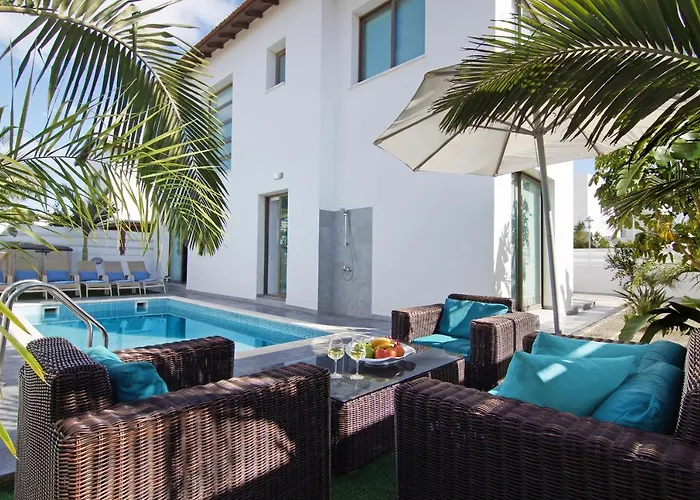 Villa Serena, som ligger cirka 15 minuters bilresa från Ayia Napas skulpturpark, erbjuder tillgång till en terrass med ett matbord. Villan med 2 sovrum och 2 badrum, som har en utomhuspool, ligger inom 25 minuters promenad från Kalamies strand.